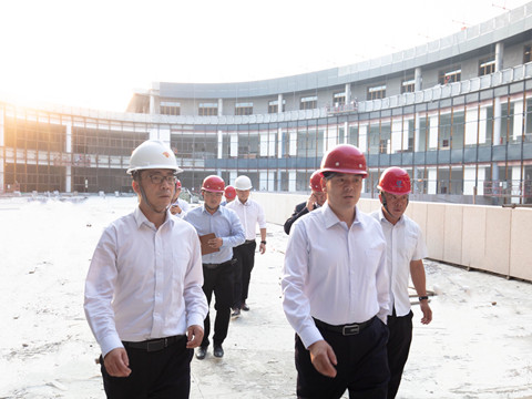 陈先瑞董事长抵达项目后,在施工现场负责人陪同下,先后对项目主体结构、二次结构、机电工程、消防专业及文体中心四大场馆现场进行查看。通过施工负责人的汇报和介绍全面了解目前施工进程和工期计划。