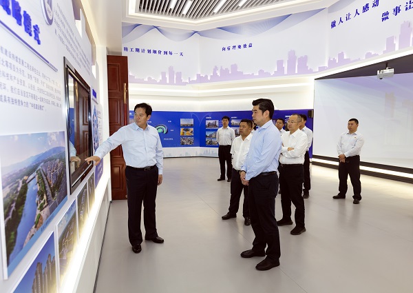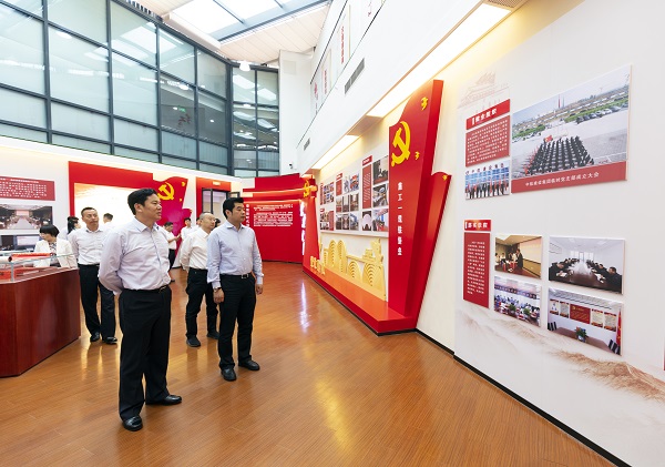 张董事长一行首先参观了集团公司展厅,全面了解了集团公司发展历程、产业项目成果、半岛平台、发展规划以及党建工作。