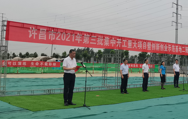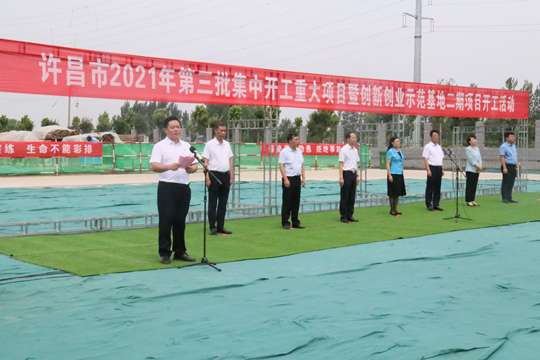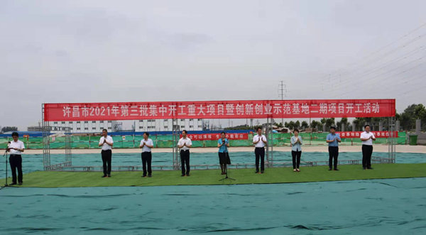 7月10日上午,河南省许昌市2021年第三批集中开工重大项目暨创新创业示范基地二期项目开工仪式顺利举行。许昌市委常委、纪委书记、监委主任方婷,魏都区委书记李朝锋,区人大常委会主任申健民,区政协主席杜晓辉,区委常委、区委办主任程中山,区委常委、区纪委书记、区监委主任徐光,魏都产业集聚区管委会主任楚文选,中航建设集团河南分公司总经理黄辰,魏都区政府相关部门、投资公司、产业集聚区、霸陵办事处等单位负责人参加活动。区委常委、常务副区长张挪威主持仪式。